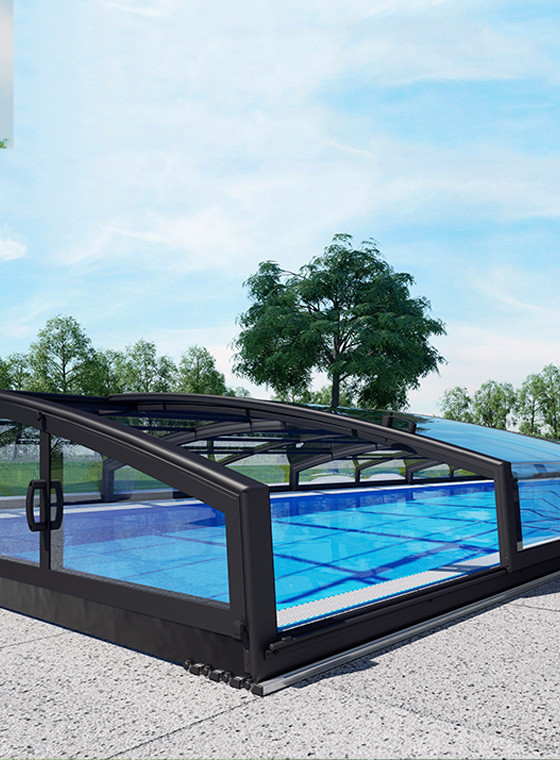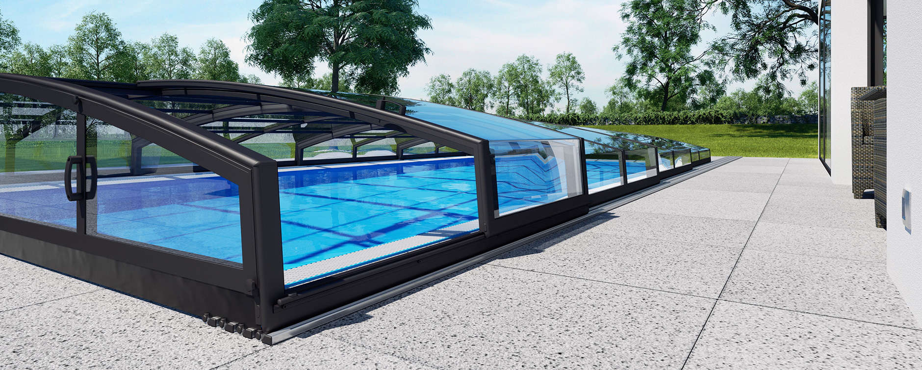 The CASABLANCA INFINITY is discreet and refined at the same time. A low pool enclosure, which appears inconspicuous at first glance in the garden. A curved transparent enclosure, a futuristic carbon look and the low Air track are proof of this.