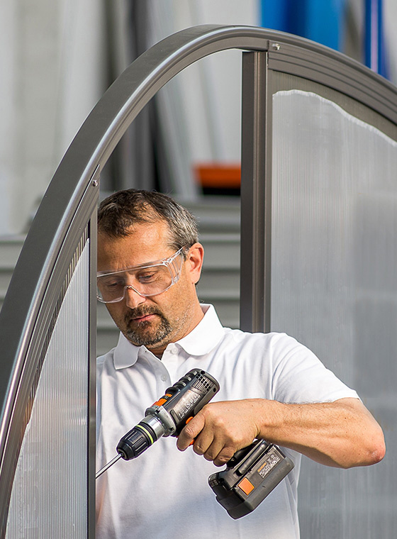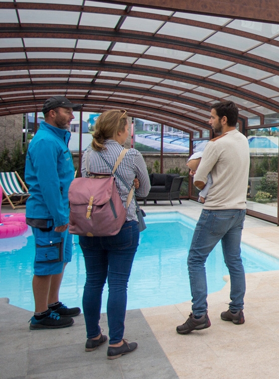 You can choose the shape or colour of the pool enclosure structure. We offer several options.